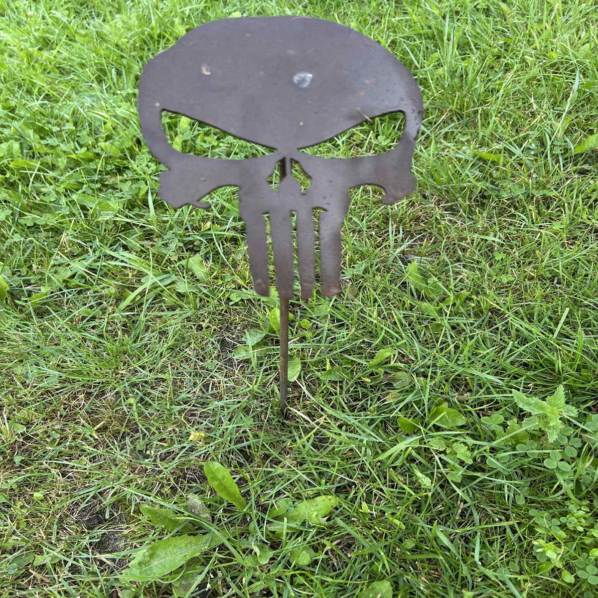 Dekorativt skull i Corten-stål – havepynt med lang holdbarhed